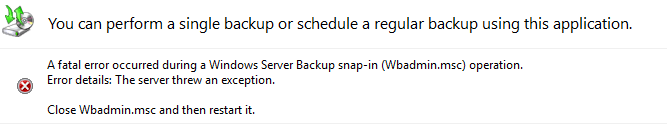 I seen this error many for at least 10 years. Restarting Wbadmin.msc is not going to help. You must open command line and run “wbadmin delete catalog”. After that you have to configure the scheduled backup again. I have done this many times through the years.